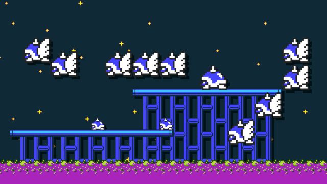 Infinite checkpoints and 6 rooms. Lots of blue platforms.