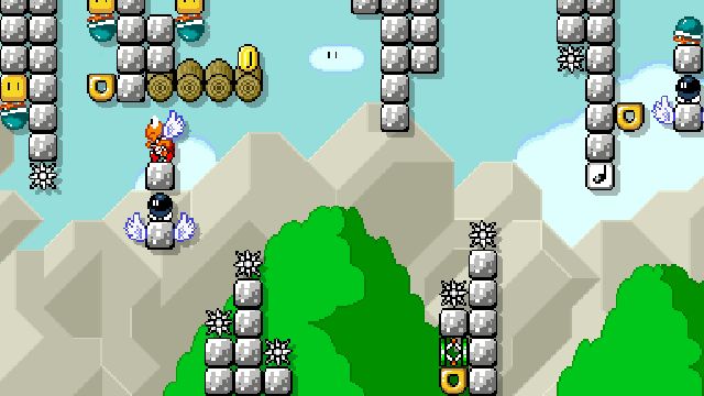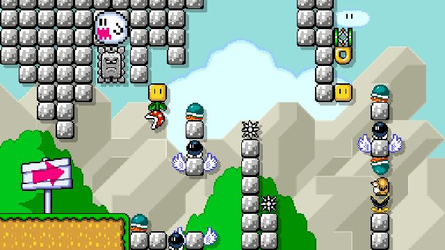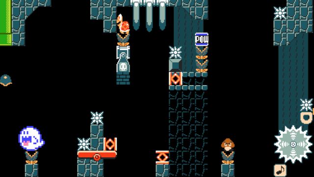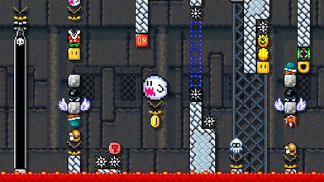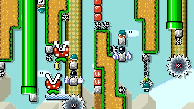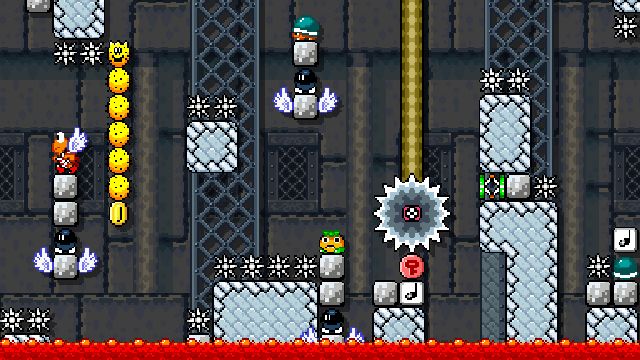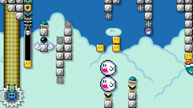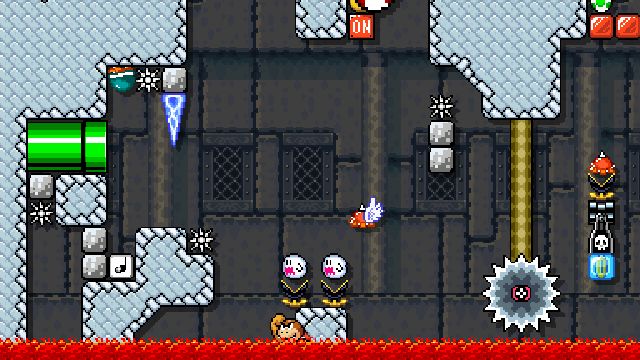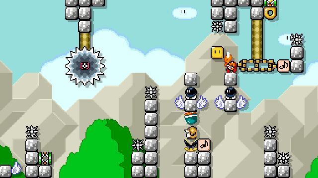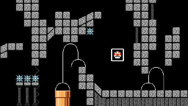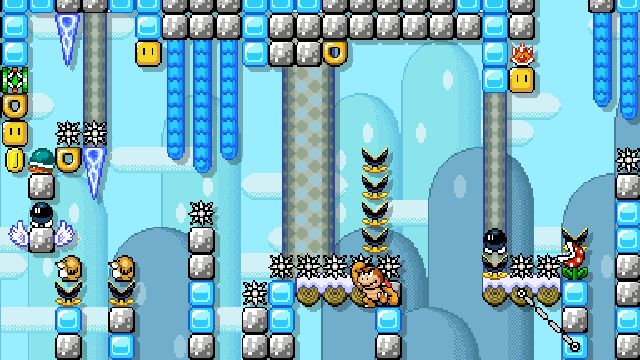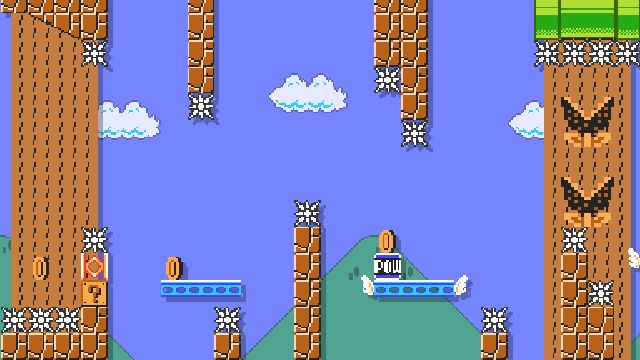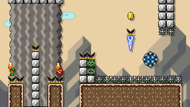 Difficult kaizo level using springs and shells. Not blind friendly.
