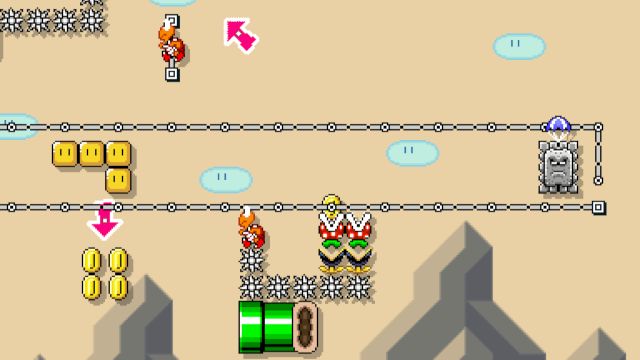 Spin your way to victory! All thwomps have parachute. Have fun.