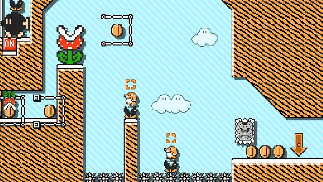 Platform in a vertical level with the help of Banzai Bills. Have fun.