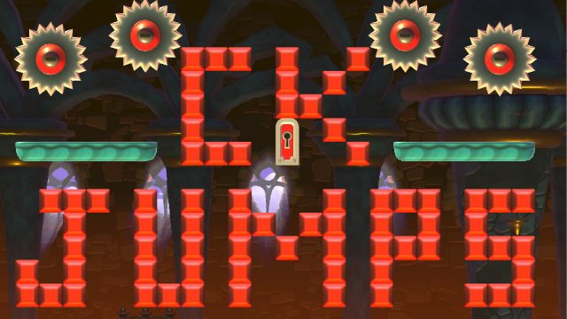 Platforms, saws, + other sharp things. No tricks, just run and jump. glhf