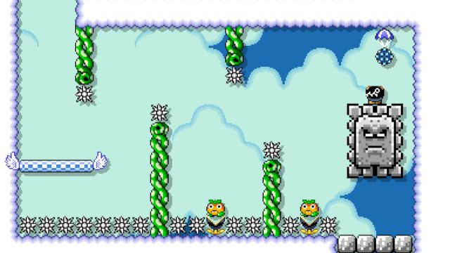 Tight platforming in the sky. Sequel to my smm1 level Doomed Castle.